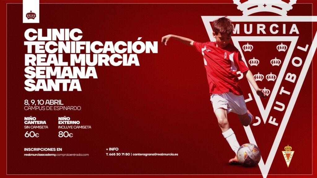 Tras la primera semana del clinic de tecnificación de Semana Santa, Real Murcia continúa apostando por la formación y el desarrollo del talento joven con la puesta en marcha de la segunda semana de su Clínic, una iniciativa dirigida a jóvenes futbolistas que buscan mejorar su rendimiento durante el periodo vacacional.
