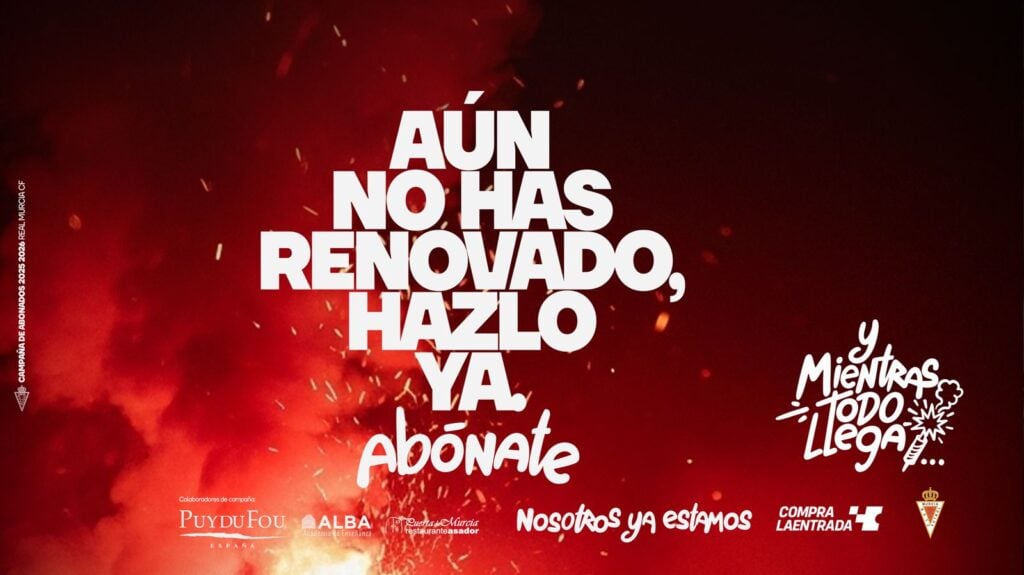 La campaña de abonos del Real Murcia C.F. sigue abierta bajo el lema “Mientras Todo Llega”, y queremos contar contigo una temporada más.