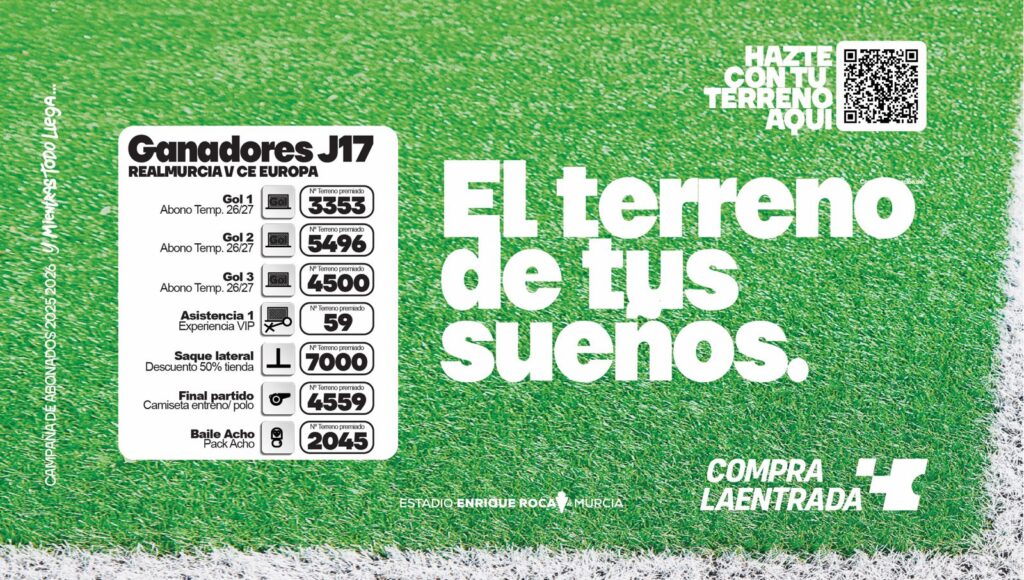 El Real Murcia participará en el Partido Benéfico de Navidad organizado junto al Ayuntamiento de Murcia, cuya recaudación irá destinada íntegramente a Cáritas Región de Murcia, en una jornada solidaria que une deporte y compromiso social. El encuentro enfrentará al UCAM Murcia y al Real Murcia y se disputará el próximo martes 30 de diciembre, […]