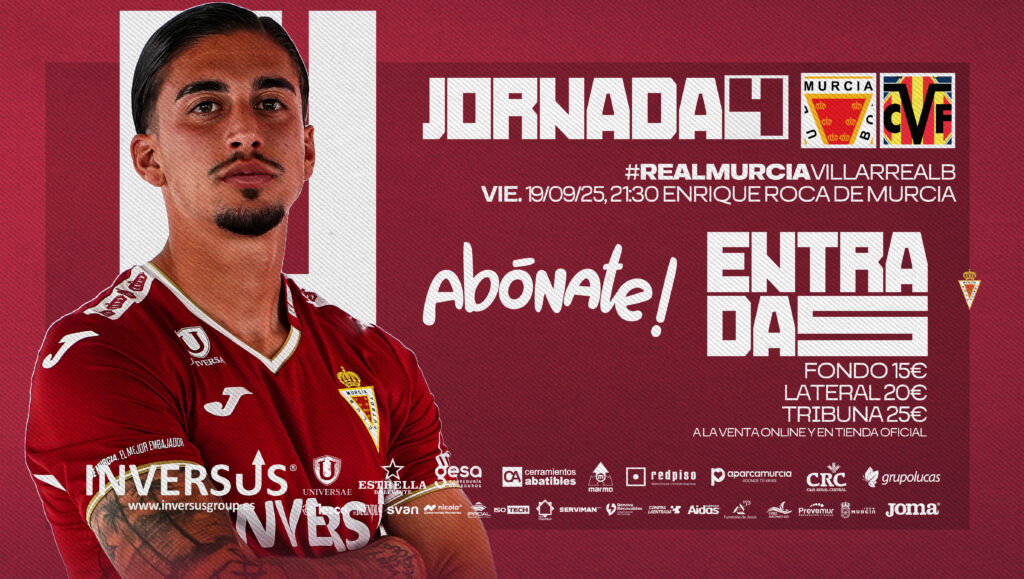 El Real Murcia C.F. informa que el encuentro correspondiente a la jornada 4 de Primera Federación 2025-2026 frente al Villarreal B se disputará finalmente el viernes 19 de septiembre a las 21:30 horas en el Estadio Enrique Roca de Murcia.
