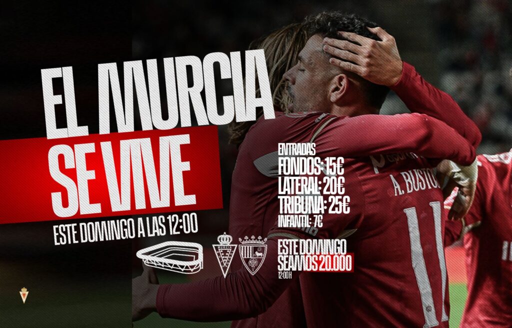 AL MURCIA LO EMPUJAMOS ENTRE TODOS. Este domingo a las 12:00, SEAMOS 20.000 ¡Hazte con tu entrada!