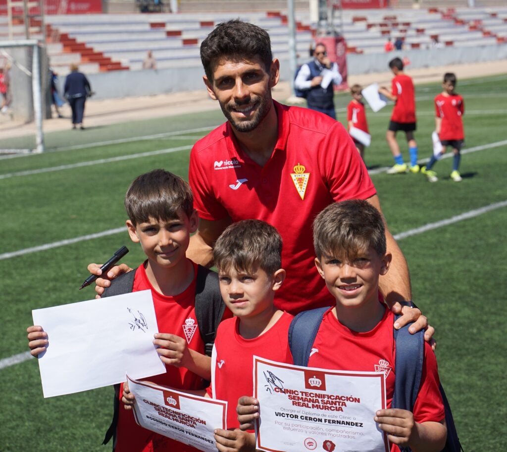 La primera semana del Clinic de Semana Santa del Real Murcia ha llegado a su fin con una jornada muy especial para todos los participantes en el Campus de Espinardo de la Universidad de Murcia. Los alumnos y alumnas han disfrutado de una experiencia inolvidable que ha combinado formación, diversión y los valores del fútbol.