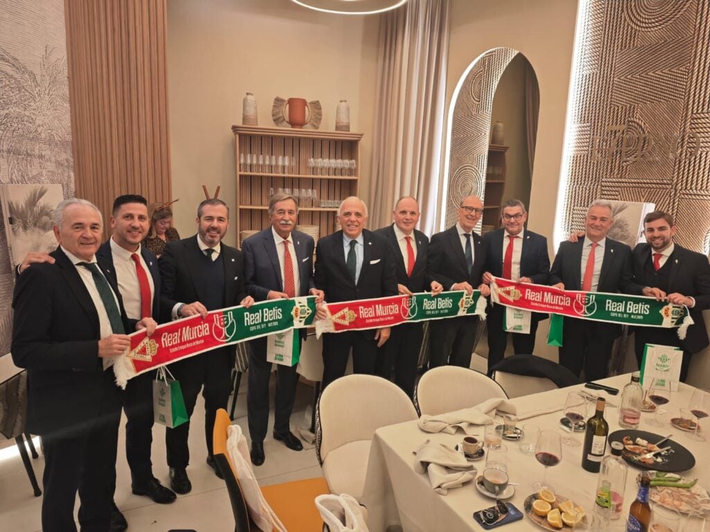 Las directivas del Real Murcia y del Real Betis Balompié han compartido este mediodía una comida institucional previa al encuentro de Copa del Rey que se disputa hoy en el Estadio Enrique Roca de Murcia.