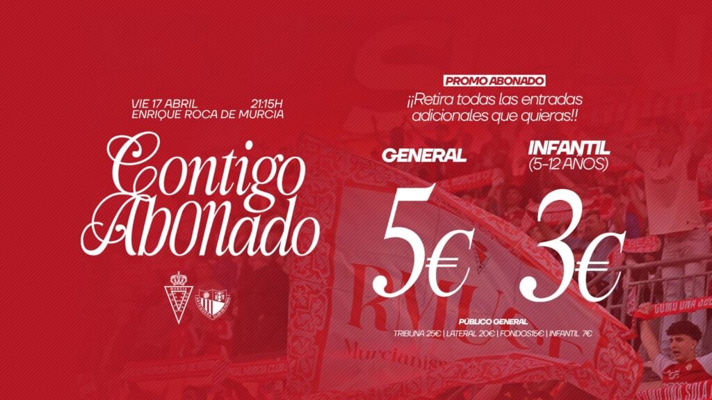 Puedes adquirir tus entradas de manera física en la Tienda Oficial del Estadio Enrique Roca de Murcia, en horario de 10:00 a 14:00 h y 17:00 a 20:00 h, o de forma online a través del siguiente enlace: Compra tus entradas aquí.