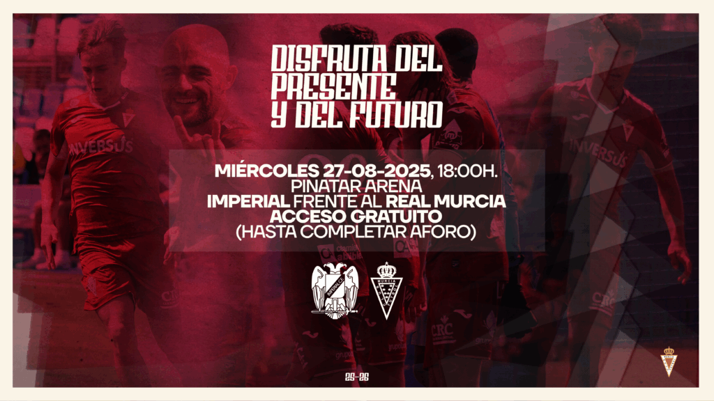 El próximo miércoles 27 de agosto a las 18:00 horas, el Pinatar Arena será escenario de un encuentro muy especial para la familia grana: el Real Murcia Imperial se enfrentará al primer equipo en un duelo de preparación que simboliza la unión entre el presente y el futuro del club.
