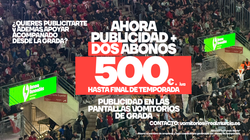 Con un precio único de 500 euros más IVA para toda la temporada, la propuesta garantiza una alta presencia visual: un mínimo de un minuto rotativo por partido, distribuido en tres pases de 20 segundos, con el logotipo ubicado estratégicamente en Tribuna, Lateral, Fondo Norte y Fondo Sur.