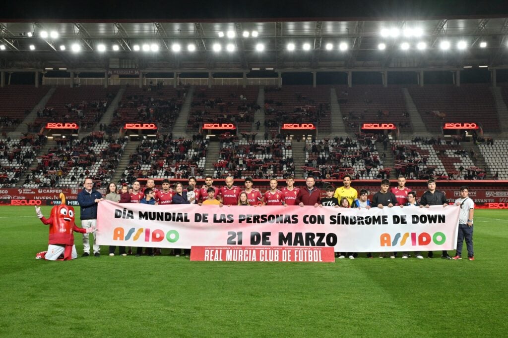 El Real Murcia C.F. protagonizó en la previa del encuentro frente al Tarazona un momento cargado de simbolismo junto a ASSIDO (Asociación para Personas con Síndrome de Down), con la realización de una foto de familia sobre el césped del estadio Enrique Roca de Murcia.