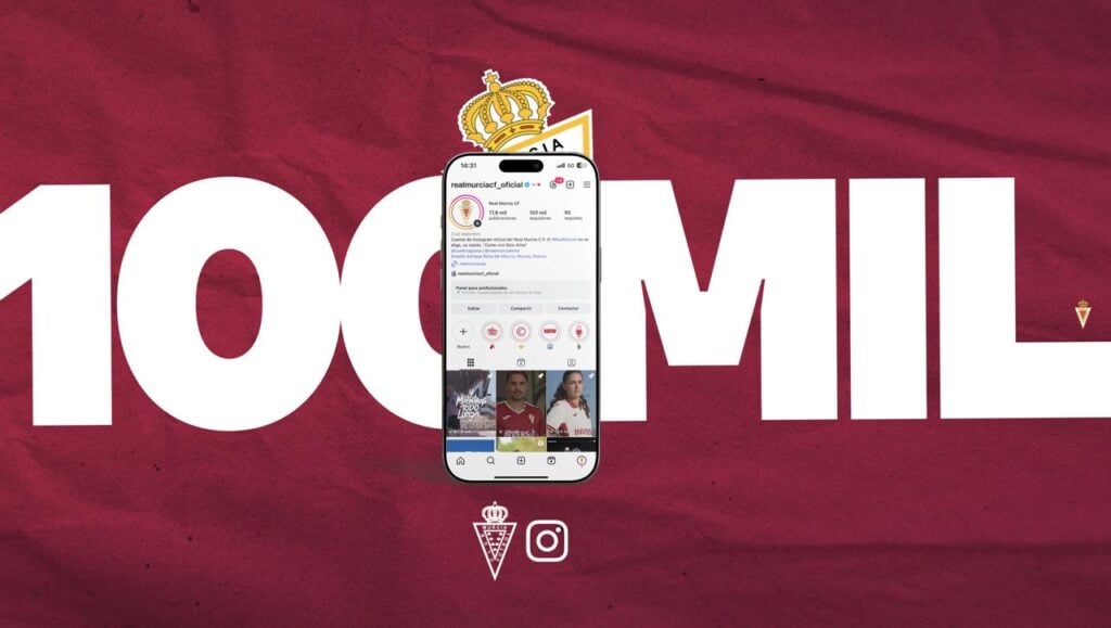 El Real Murcia C.F. sigue creciendo también fuera de los terrenos de juego. La cuenta oficial del club en Instagram, @realmurciacf_oficial, ha superado la cifra de 100.000 seguidores, consolidándose como una de las referencias digitales más importantes dentro del fútbol nacional en su categoría.