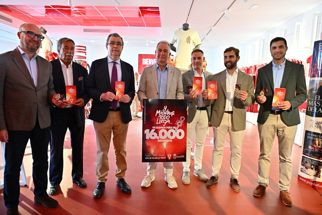 El Real Murcia C.F. ha alcanzado la cifra de más de 16.000 abonados en la presente campaña de abonos ‘Mientras todo llega’. El anuncio fue realizado por el presidente de la entidad, Felipe Moreno, durante el acto de reinauguración de la Tienda Oficial del estadio Enrique Roca de Murcia, que tuvo lugar esta mañana.