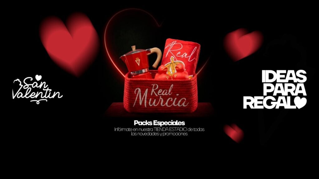 Este San Valentín, demuestra tu amor regalando Real Murcia. Todos los packs y productos ya están disponibles en la Tienda Oficial del club, hasta fin de existencias.