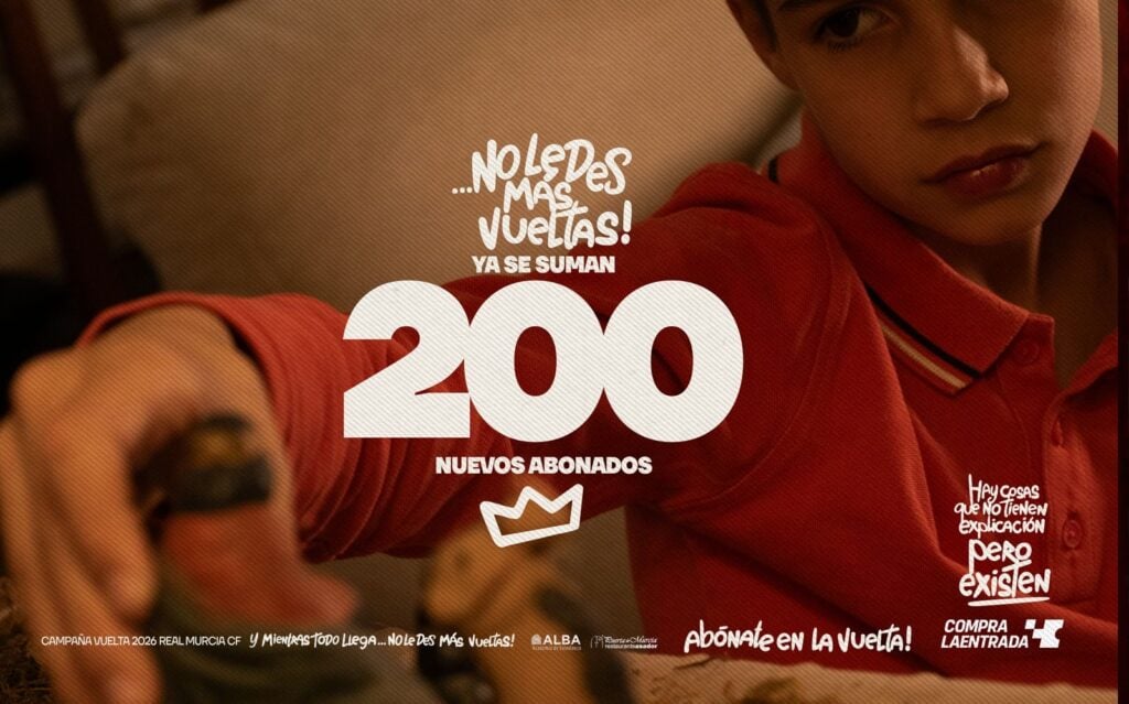 Bajo el lema “Mientras todo llega… No le des más vueltas”, el club apela a ese sentimiento que no siempre se puede explicar, pero que se siente. Porque hay cosas que no tienen explicación, pero existen, y el Real Murcia es una de ellas.