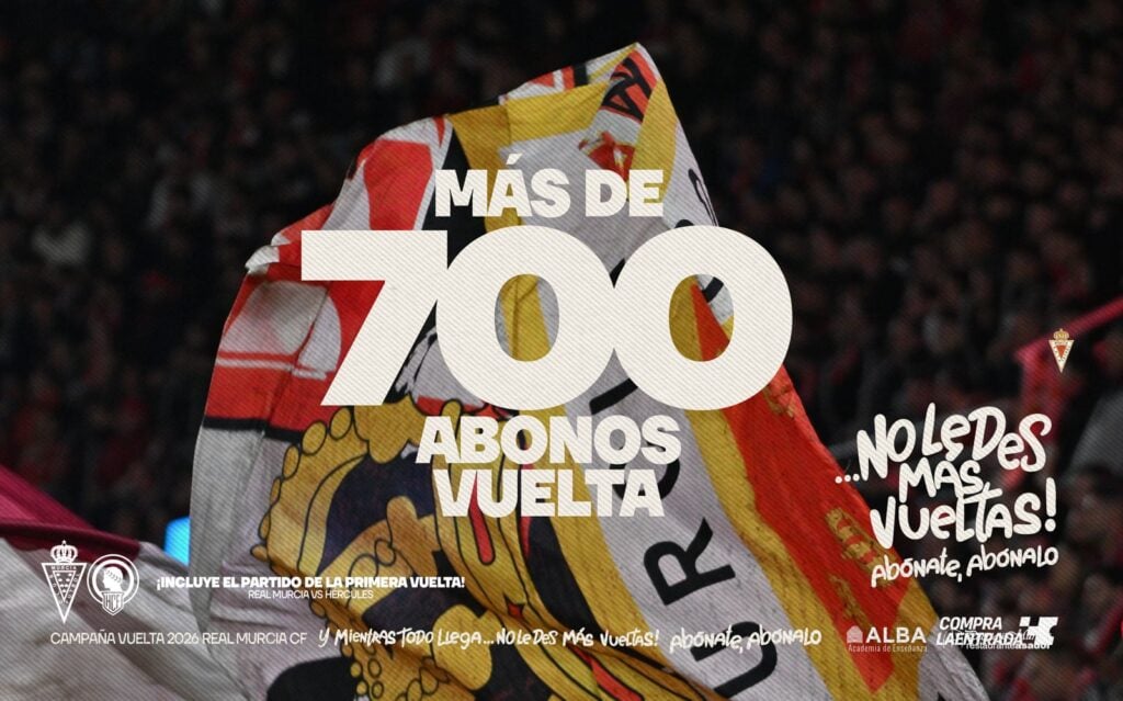 La campaña de Abonos de Segunda Vuelta del Real Murcia C.F. continúa creciendo a pasos agigantados y ya son 700 los nuevos abonados que se han sumado en las primeros 15 días.