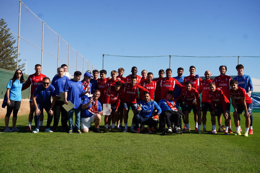 Durante la sesión, pudieron presenciar el trabajo del equipo dirigido por Adrián Colunga, además de compartir un emotivo momento con los jugadores al finalizar el entrenamiento. Fotos, sonrisas y firmas pusieron el broche a una mañana en la que la pasión por el fútbol y los valores del murcianismo fueron los grandes protagonistas.