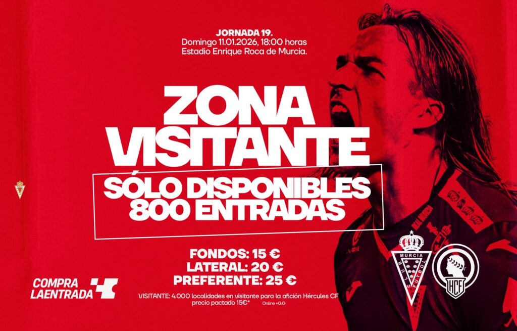El partido entre Real Murcia y Hércules C.F., que se disputará el domingo 11 de enero a las 18:00 horas en el Estadio Enrique Roca de Murcia, continúa despertando un enorme interés también entre la afición visitante.