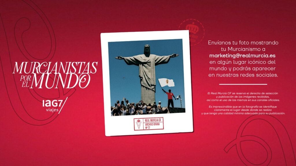 El Real Murcia CF lanza una nueva iniciativa dirigida a todos esos aficionados que llevan el murcianismo por bandera más allá de nuestra tierra. Bajo el lema “Murcianistas por el Mundo”, el club invita a sus seguidores a compartir imágenes mostrando su pasión grana en cualquier rincón icónico del planeta.