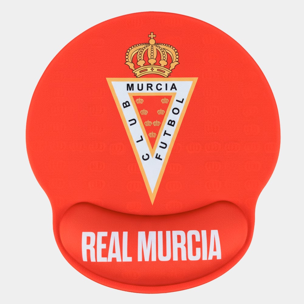 Alfombrilla de ratón oficial y ergonómica del Real Murcia C.F. con reposamuñecas acolchado. Diseño en color rojo con el escudo del club. Máxima comodidad y precisión para fans pimentoneros. Ideal para trabajo y gaming.