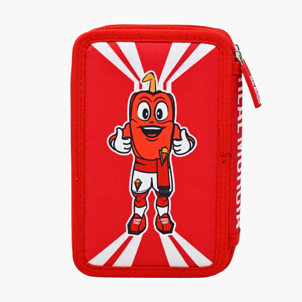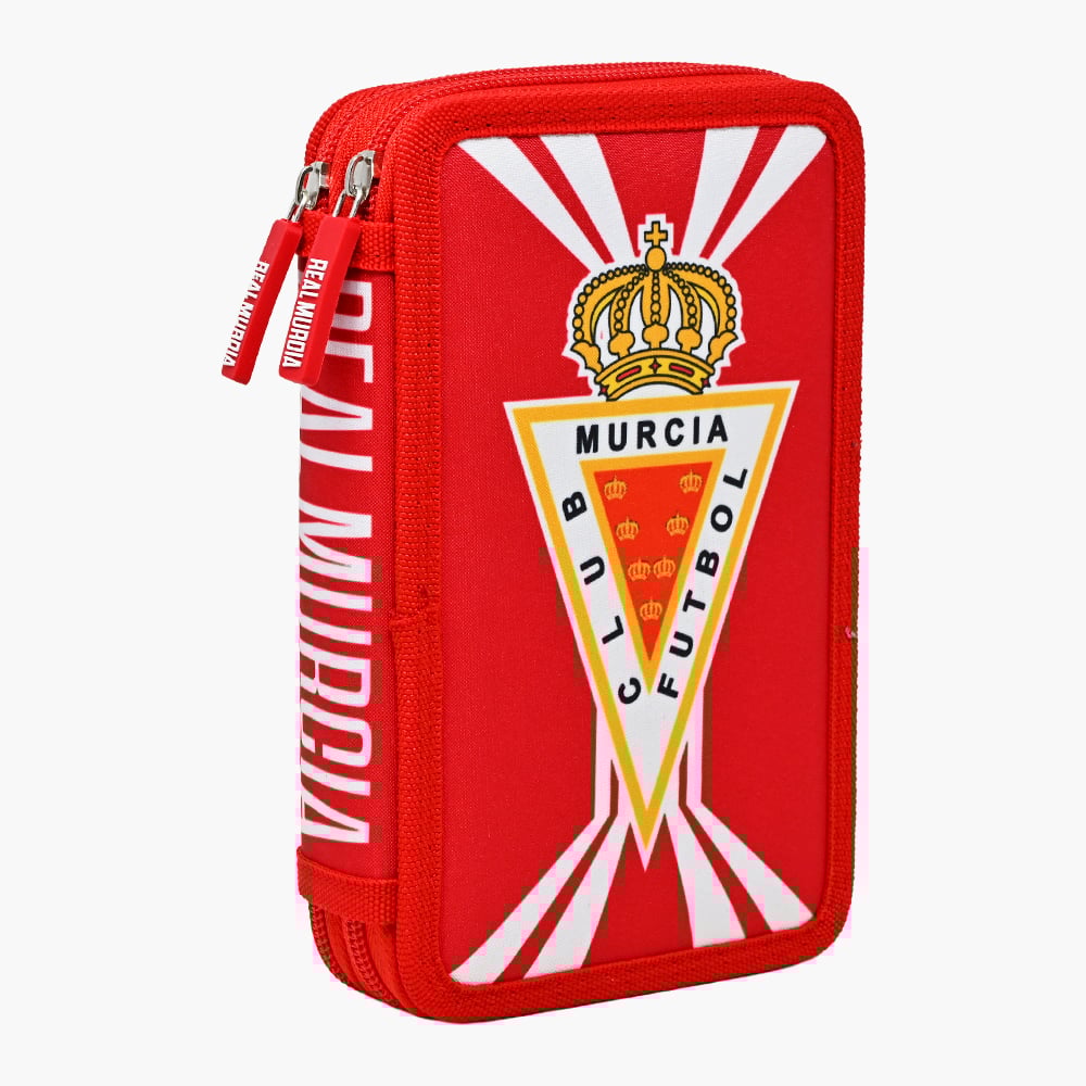 Estuche del Real Murcia CF, práctico y resistente, ideal para el colegio, la oficina o el día a día. Su diseño en los colores representativos del club incluye el escudo del Real Murcia CF en el frontal, aportando un toque distintivo y elegante.