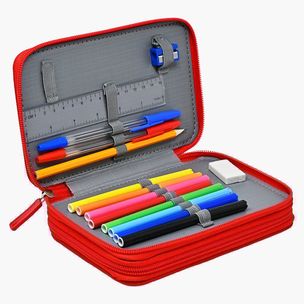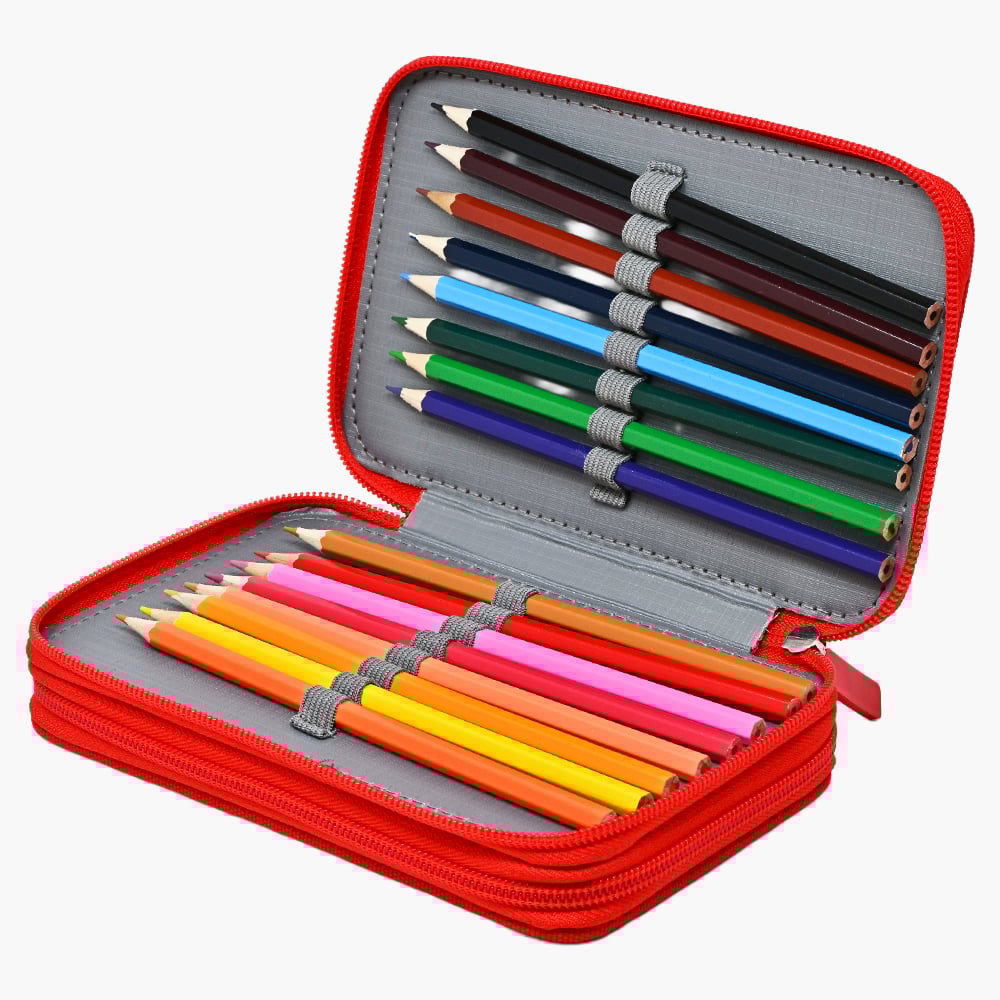 Fabricado en material duradero, dispone de cierre con cremallera que garantiza una apertura y cierre seguros, ofreciendo espacio suficiente para bolígrafos, lápices y pequeños accesorios.