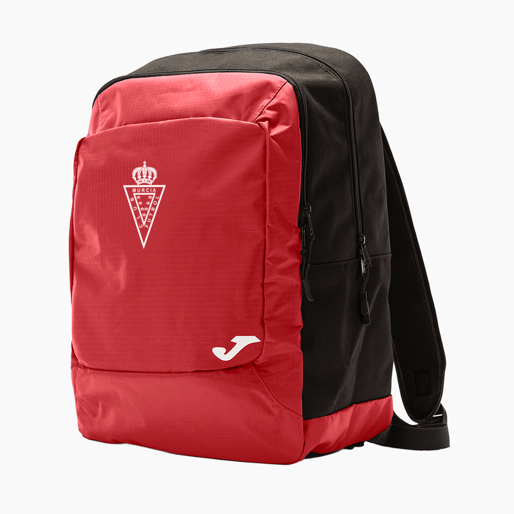 Descubre la mochila de paseo del Primer Equipo. Con un diseño funcional y moderno en rojo y negro, esta mochila destaca por su resistencia y comodidad. Un accesorio versátil y duradero, con el detalle del escudo del Real Murcia, perfecto para llevar todo lo que necesitas en tu día a día.