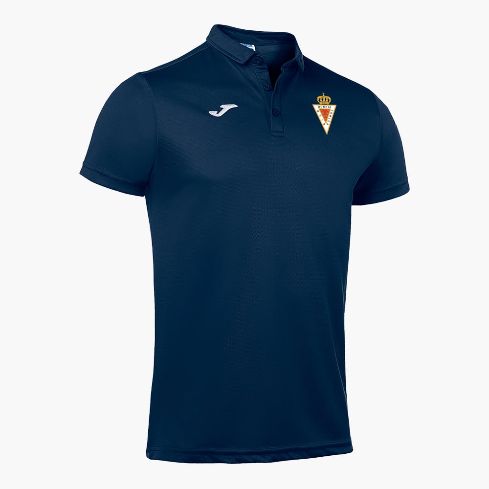 Confeccionado en tejido técnico transpirable y ligero, su diseño en azul marino con detalles en blanco incorpora cuello tipo polo con tapeta de botones, lo que aporta un toque elegante sin renunciar a la comodidad. El escudo del Real Murcia CF y el logo de Joma en el pecho completan esta prenda oficial indispensable.