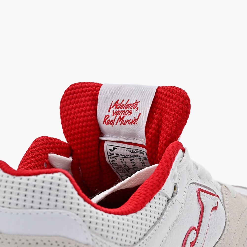 Lema ‘¡Adelante, vamos Real Murcia!’ en la parte trasera de la lengüeta.