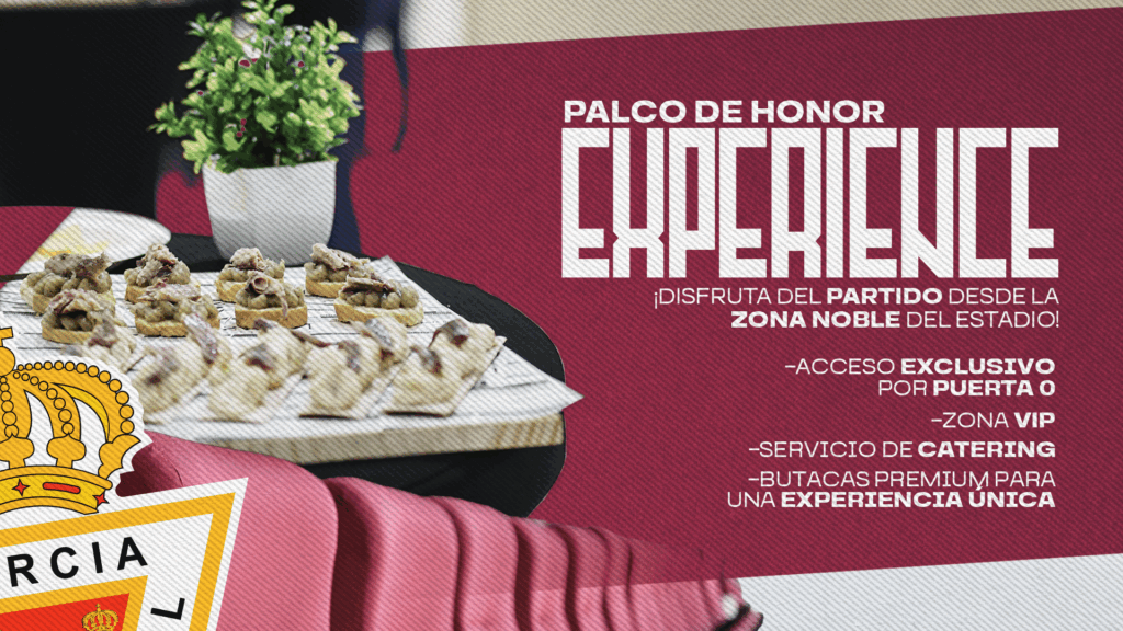 El Real Murcia ofrece a sus aficionados la oportunidad de disfrutar de una experiencia inolvidable en el Palco de Honor Experience, coincidiendo con el próximo partido en el estadio Enrique Roca de Murcia ante el Sevilla Atlético.